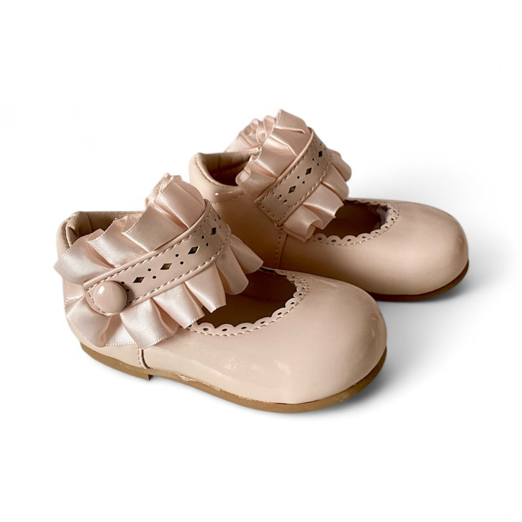 Beige Patent Baby Shoes with Ruffle Strap
