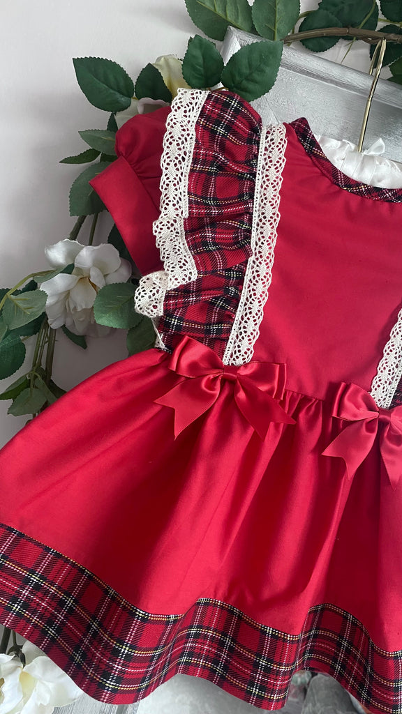 Beautiful baby girls tartan frilly red dress with puffball sleeves